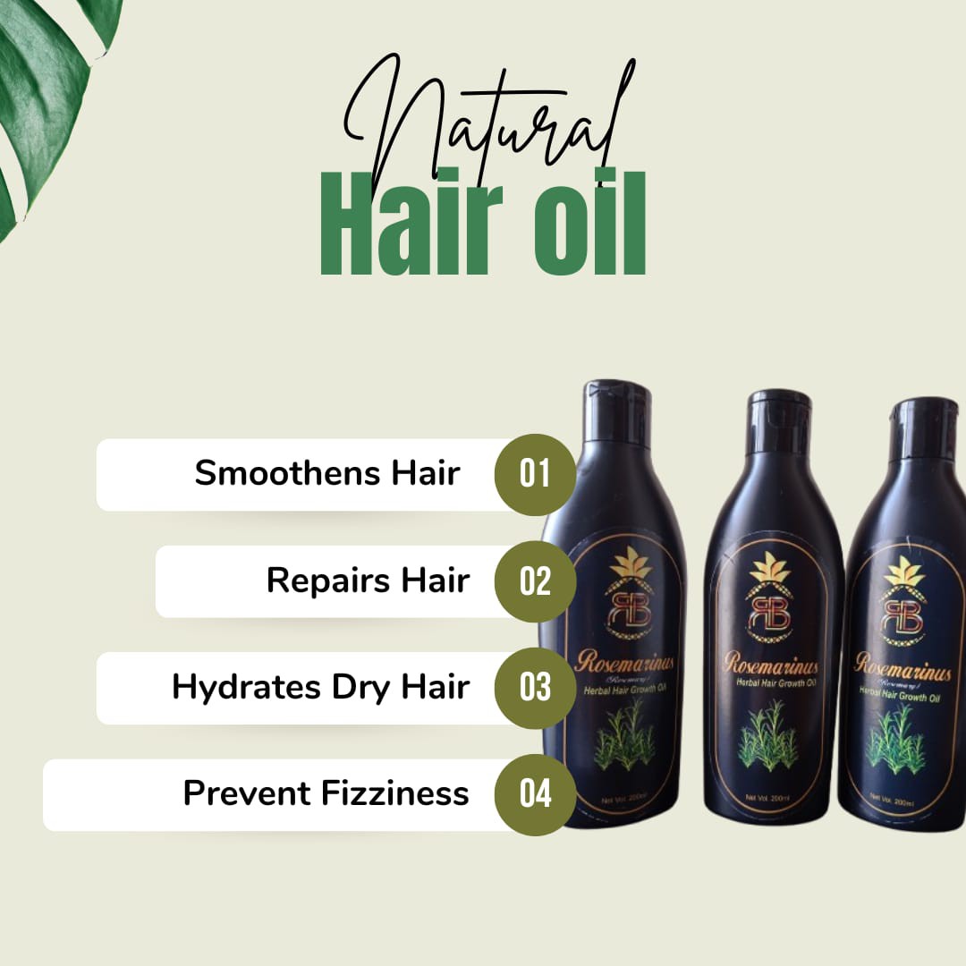 Rose mary hair oil Smoothens hair Repairs hair Hydrates dry hair