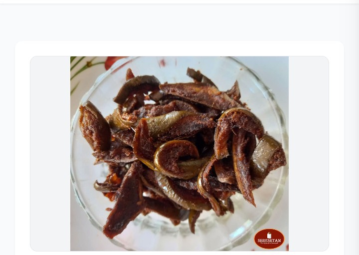 Shreshtam Special *Varuthamanga* is a traditional dry mango pickle made with fried raw mangoes and other ingradients — no vinegar, no preservatives. Just pure, homemade taste in every bite. 250g MRP Rs 200